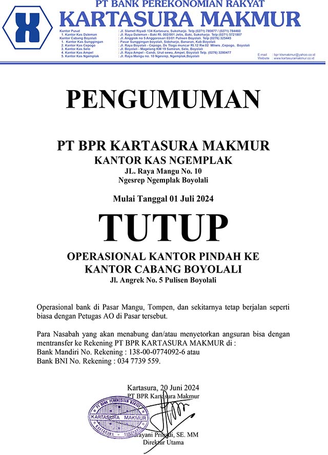 PENGUMUMAN TUTUP KANTORKAS NGEMPLAK
